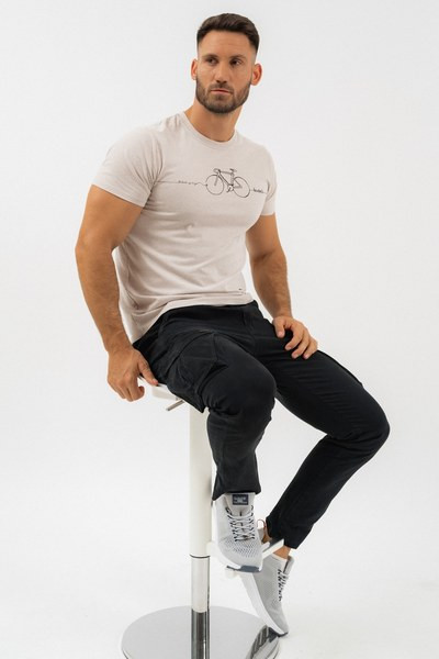 bézs melanzs színű Budmil póló - 20300454-001 férfi póló. Felsőrészének az anyaga: 60% pamut-40% poliészter