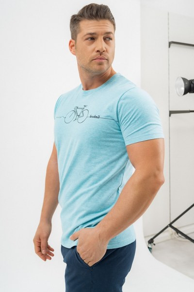 kék melanzs színű Budmil póló - 20300454-002 férfi póló. Felsőrészének az anyaga: 60% pamut-40% poliészter