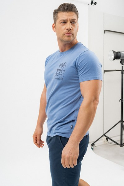 kék melanzs színű Budmil póló - 20300454-004 férfi póló. Felsőrészének az anyaga: 60% pamut-40% poliészter