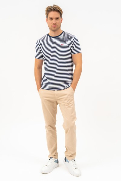 modern fit férfi póló rugalmas anyagból - nyomott mintával és szövött címkével díszített