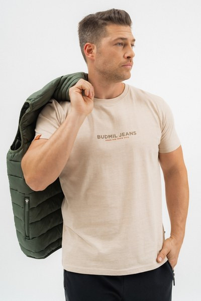 bézs melanzs színű Budmil póló - 20310115-001 férfi póló. Felsőrészének az anyaga: 95% pamut-5% elasztán