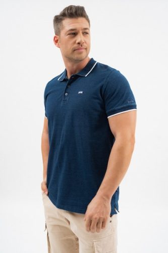 férfi galléros póló piké anyagbólmodern fit - farmer hatású anyag - nyomott mintával és szövött címkével díszített<br> <br><p>Ez a <strong>férfi galléros póló piké anyagból</strong> <strong>modern fit szabású</strong>. A póló különleges, <strong>farmer hatású anyagból</strong> készült, ami egyedi textúrát ad a ruhadarabnak. Stílusos <strong>nyomott minta és szövött címke</strong> díszíti..</p>
