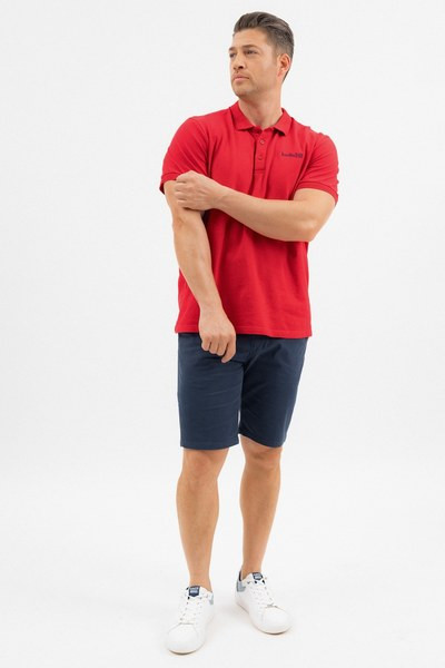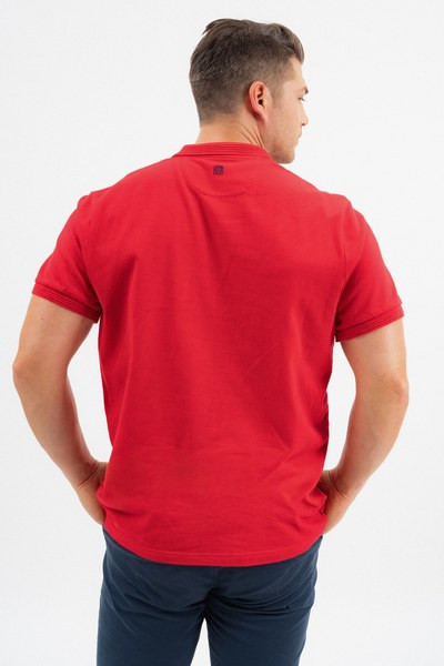 piros színű Budmil galléros póló - 20730276-001 férfi póló. Felsőrészének az anyaga: 95% pamut-5% elasztán