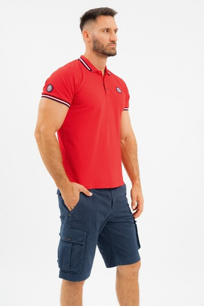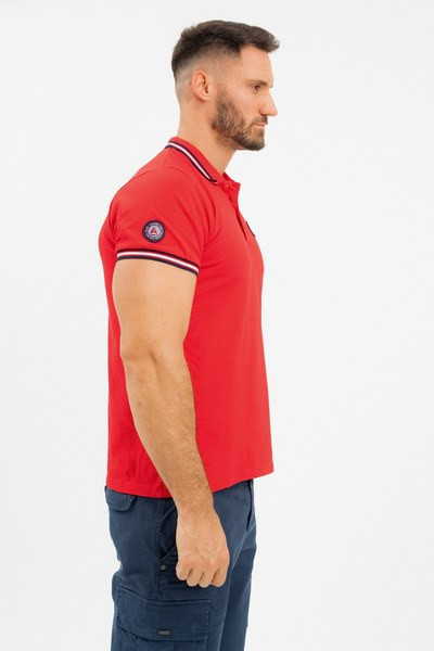 piros színű Budmil galléros póló - 20730277-002 férfi póló. Felsőrészének az anyaga: 95% poliészter - 5% elasztán