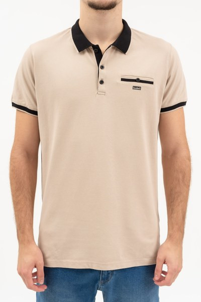 bézs színű Budmil galléros póló - 20730279-001 férfi póló. Felsőrészének az anyaga: 95% pamut-5% elasztán