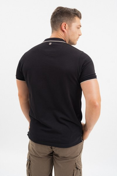 fekete színű Budmil galléros póló - 20730279-002 férfi póló. Felsőrészének az anyaga: 95% pamut-5% elasztán