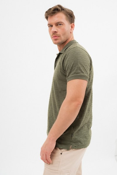 férfi galléros póló jacquard mintás piké anyagbólmodern fit - szövött címkével és nyomott mintával díszített<br> <br><p>Ez a <strong>férfi galléros póló jacquard anyagból</strong> <strong>modern fit szabású</strong>, amely kényelmes, laza viseletet biztosít. A pólót <strong>stílusos nyomott minta és szövött címke</strong> díszíti.</p>