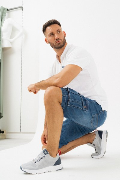 férfi oldalzsebes farmer bermuda nadrágnormál derékmagasság - fém és műbőr címkével díszítve - A termék a divatos, intenzív festés miatt, az első pár mosás alkalmával eresztheti a színét, ezért ajánlott elkülönítve mosni. - A kopás elkerülésének érdekében érdemes kifordítva mosni.<br> <br><p>