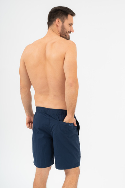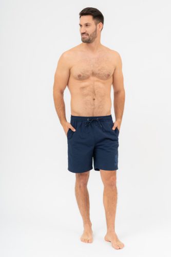 Férfi beach short. Hálós belső nadrággal. Nyomott mintával díszítve. Mindkét oldalán zsebek. Hátul egyik oldalán tépőzáras zseb.