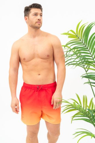 Férfi beach short . Hálós belső nadrággal . Nyomott mintával és/vagy szövött címkével díszítve. Mindkét oldalán zsebek. Hátul egyik oldalán tépőzáras zseb. A nadrág hátsó részén vízkivezető lyukak.
