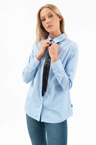 v.kék színű Budmil Blúz - B20770076-002 női Blúz. Felsőrészének az anyaga: 95% pamut-5% elasztán