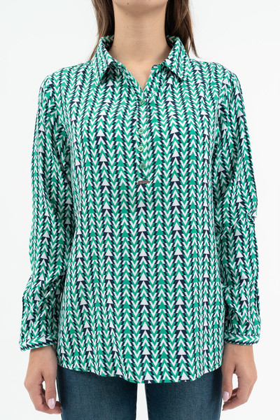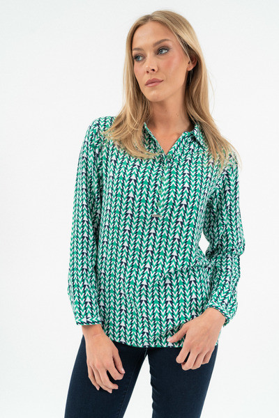 zöld-fehér színű Budmil Blúz - B20770077-002 női Blúz. Felsőrészének az anyaga: 100% viszkóz