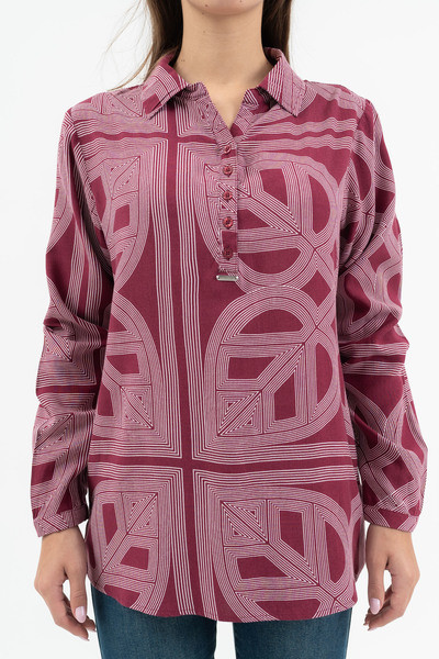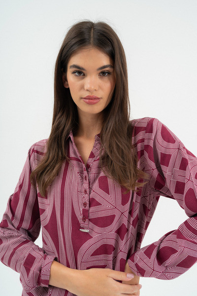 bordó-fehér színű Budmil Blúz - B20770077-003 női Blúz. Felsőrészének az anyaga: 100% viszkóz