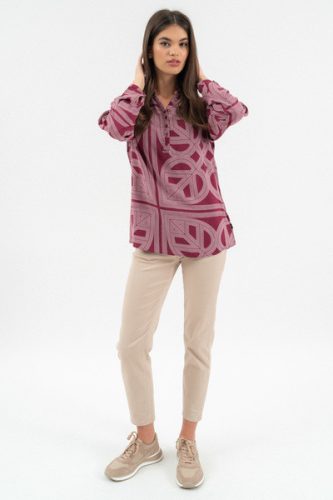 bordó-fehér színű Budmil Blúz - B20770077-003 női Blúz. Felsőrészének az anyaga: 100% viszkóz