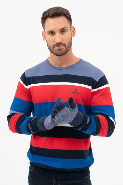 Férfi kötött kesztyű. Műbőr címkével díszítve.
