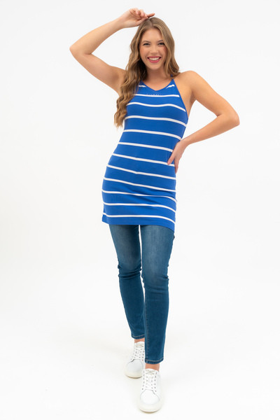 s.kék-fehér színű Budmil Ujjatlan póló - B20320442-001 női Póló. Felsőrészének az anyaga: 95% pamut-5% elasztán