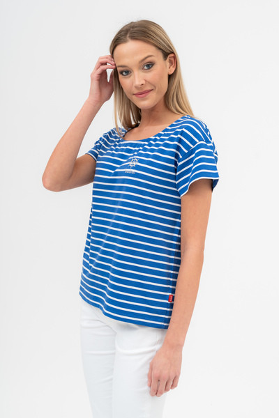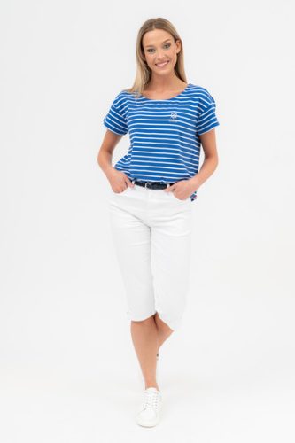 királykék-fehér színű Budmil Póló - B20331137-001 női Póló. Felsőrészének az anyaga: 95% pamut-5% elasztán