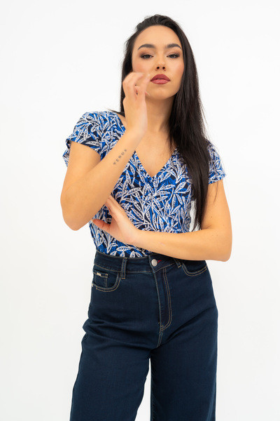 Női póló . Karcsúsított fazon . Húzott mellrésszel . Fémcímkévell díszített.