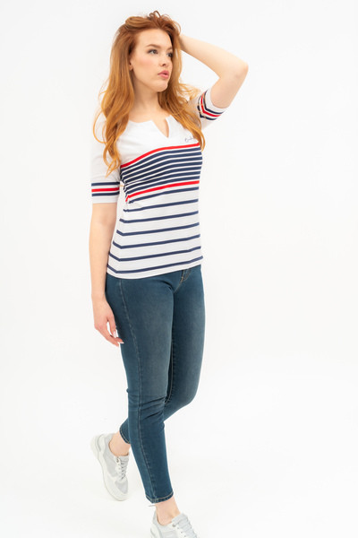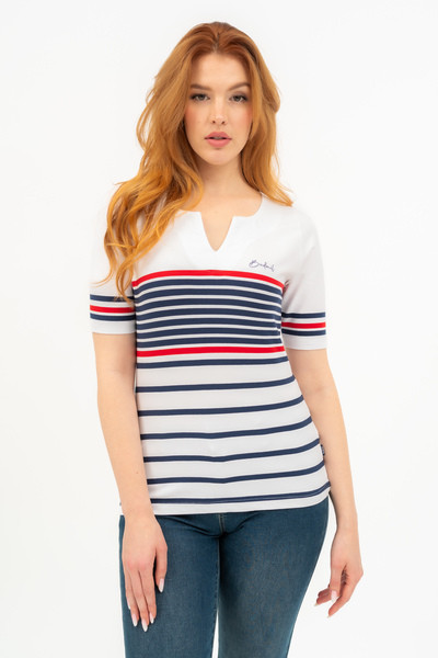 fehér-s.kék színű Budmil Póló - B20331152-001 női Póló. Felsőrészének az anyaga: 95% pamut-5% elasztán