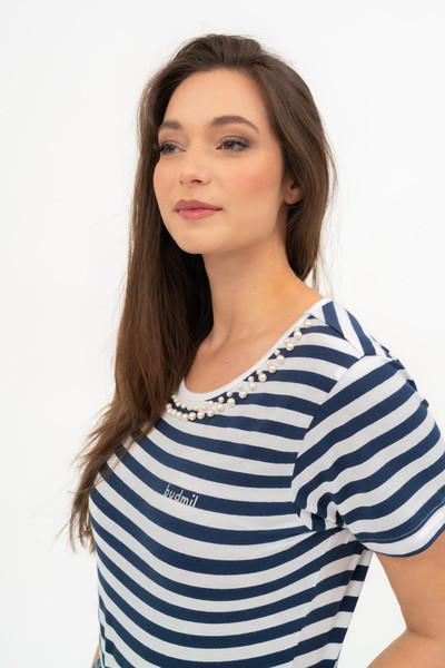 fehér-s.kék színű Budmil Póló - B20331154-001 női Póló. Felsőrészének az anyaga: 95% pamut-5% elasztán