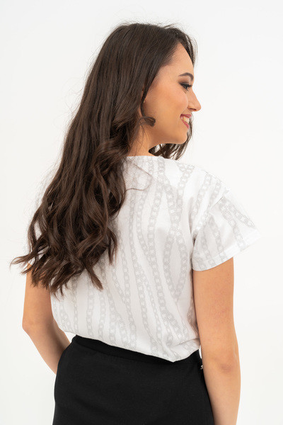 Női póló . Lezser fazon . Fémcímkével vagy hímzett mintával díszített.