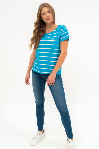 türkiz-fehér színű Budmil Póló - B20331155-002 női Póló. Felsőrészének az anyaga: 95% pamut-5% elasztán