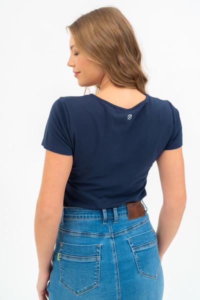 Női póló . Karcsúsított fazon . Nyomott mintával díszített.