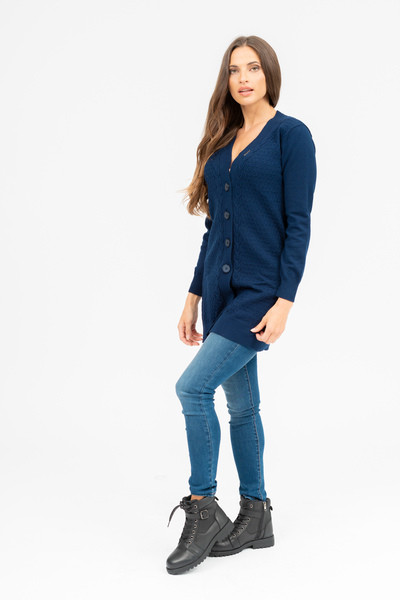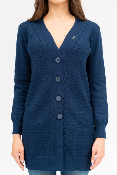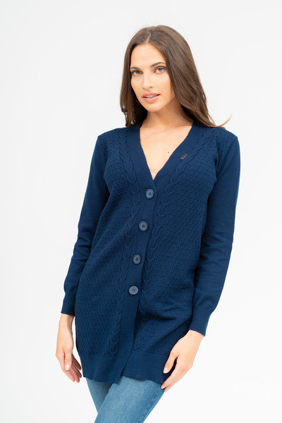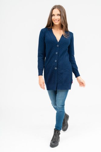 Női vékony kötött kardigán. Egyenes fazon. Fémcímkékkel díszítve.