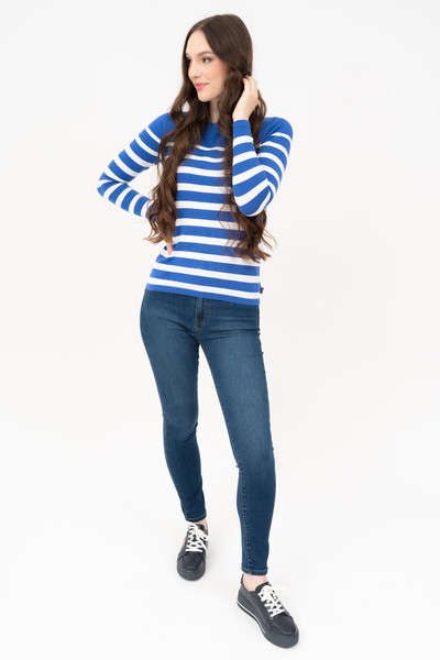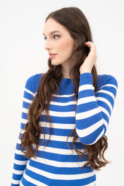 kék-fehér színű Budmil Kötött pulóver - B20050798-001 női Pulóver. Felsőrészének az anyaga: 70% viszkóz-30% poliamid