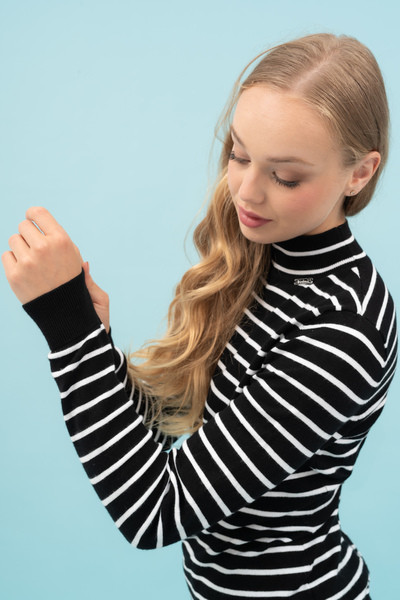 fekete-fehér színű Budmil Kötött pulóver - B20050800-002 női Pulóver. Felsőrészének az anyaga: 70% viszkóz-30% poliamid