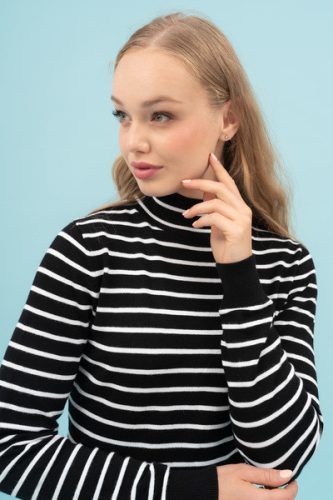 fekete-fehér színű Budmil Kötött pulóver - B20050800-002 női Pulóver. Felsőrészének az anyaga: 70% viszkóz-30% poliamid