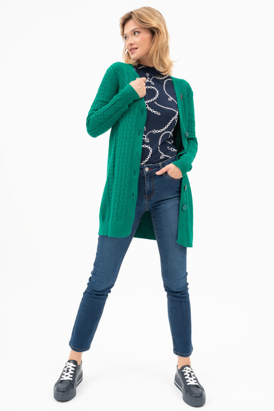 Női vékony kötött kardigán. Egyenes fazon. Fémcímkével díszítve.