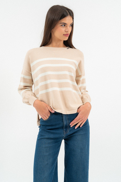 bézs-fehér színű Budmil Kötött pulóver - B20050826-001 női Pulóver. Felsőrészének az anyaga: 50% viszkóz-30% poliészter-20% poliamid