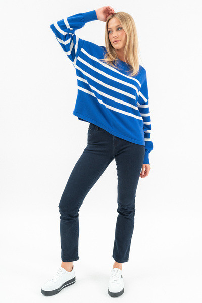 kék-fehér színű Budmil Kötött pulóver - B20050826-002 női Pulóver. Felsőrészének az anyaga: 50% viszkóz-30% poliészter-20% poliamid