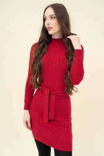 Női vékony kötött ruha. Szűk fazon. Derekán öv. Fémcímkével díszítve.