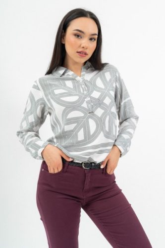 női blúz - lezser fazon - fémcímkével díszítve - FIGYELEM! A nagyméretű nyomott minták egyedileg kerülnek rá minden termékre, így az elhelyezkedésük eltérő lehet a fotón látottól!