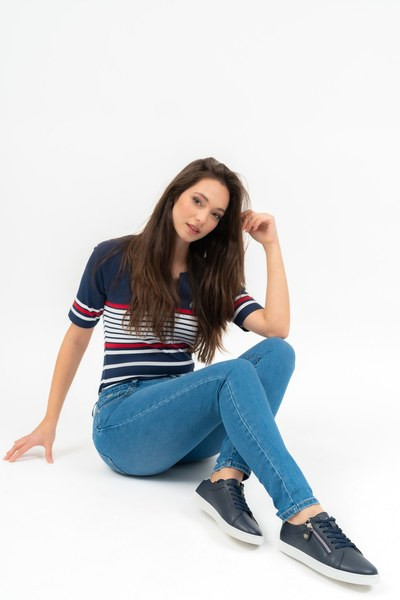 női sneaker - felsőrésze valódi bőr - bélése valódi bőr és textil - talpbélése valódi bőr - fém címkével és nyomott mintával díszítve