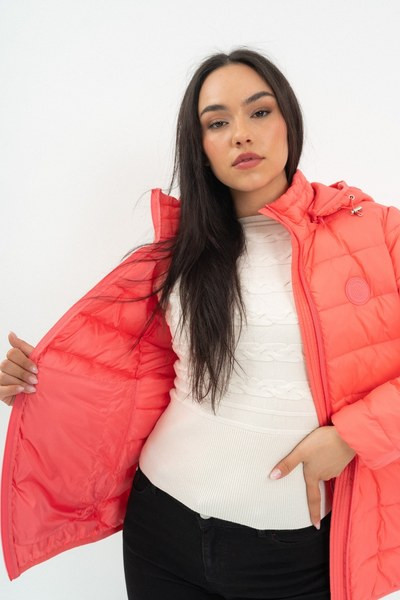 korall színű Budmil átmeneti kabát - 20010130-004 női kabát. Felsőrészének az anyaga: 100% poliamid-100% poliészter