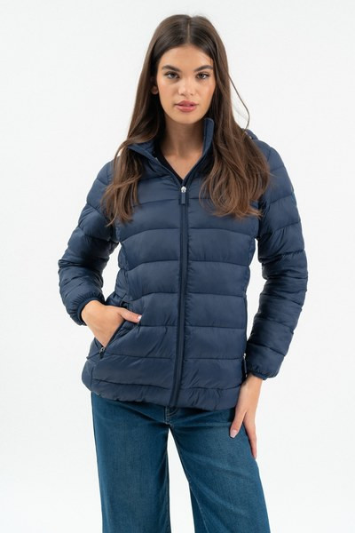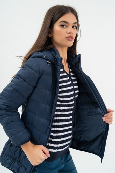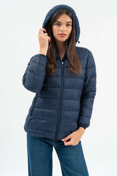 női steppelt vékony dzseki - enyhén karcsúsított fazon - kapucni lecipzározható - gumicímkékkel díszítve