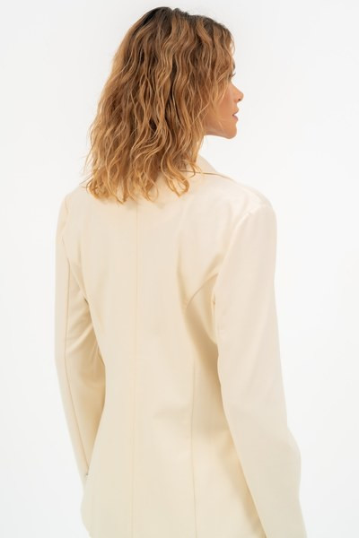 bézs színű Budmil blézer - 20060091-001 női kabát. Felsőrészének az anyaga: 68% viszkóz - 27% poliamid - 5% elasztán