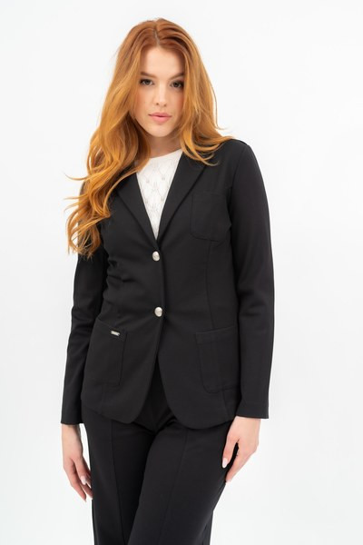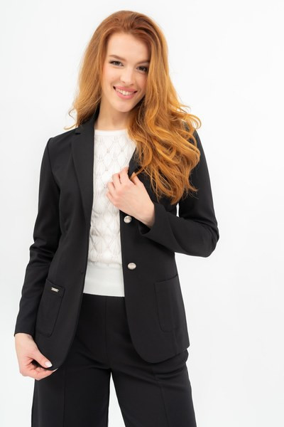 fekete színű Budmil blézer - 20060091-003 női kabát. Felsőrészének az anyaga: 68% viszkóz - 27% poliamid - 5% elasztán