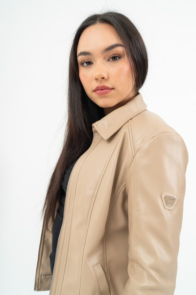 női műbőr dzseki - karcsúsított fazon - fém címkével díszítve