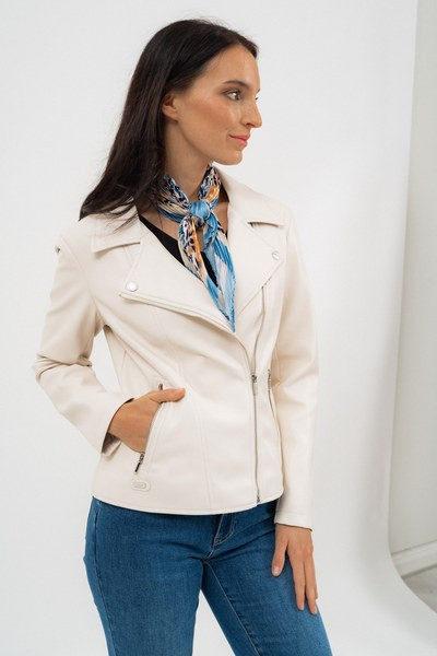 női műbőr motoros dzseki karcsúsított, rövid fazon - fémcímkékkel díszítve <br> <br><p>Ez a <strong>női műbőr motoros dzseki</strong> karcsúsított, rövid fazonjával határozott, modern megjelenést biztosít. A <strong>karcsúsított szabás</strong> kényelmes illeszkedést ad, miközben kiemeli az alakot. A motoros stílust visszafogott <strong>fémcímkés díszítés</strong> egészíti ki.</p>