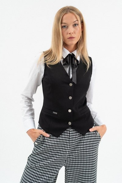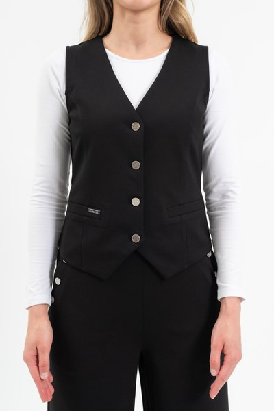 női mellény - karcsúsított fazon - fémcímkével díszítve