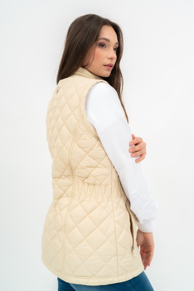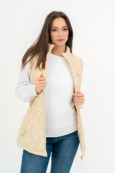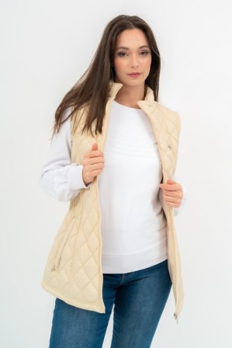 Női steppelt vékony mellény . Belső zseb. Fém címkével díszítve.