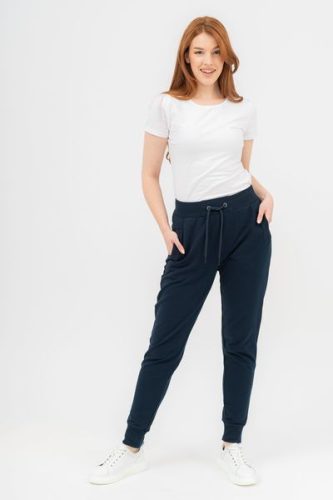női szabadidőnadrág rugalmas anyagból - alapanyaga belül bolyhozatlan - alja passzés - hímzett mintával díszítve