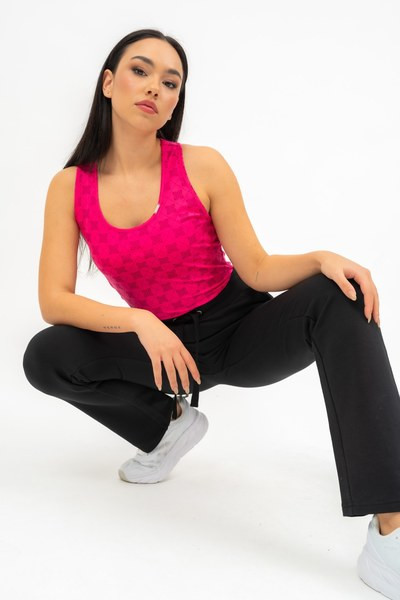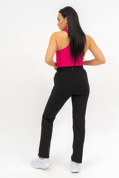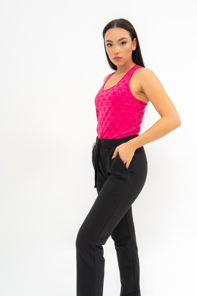 női szabadidőnadrág - rugalmas anyagból - alapanyaga belül bolyhozatlan - alja egyenes szárú - hímzett mintával díszítve
