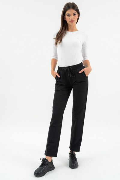 női szabadidőnadrág - rugalmas anyagból - alapanyaga belül bolyhozatlan - alja egyenes szárú - hímzett mintával díszítve