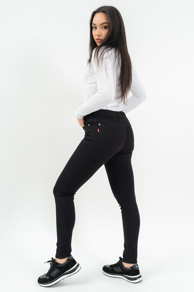 női skinny farmernadrág - szűk szabású - normál derékmagasság - push-up fazon - fém és műbőr címkével díszítve