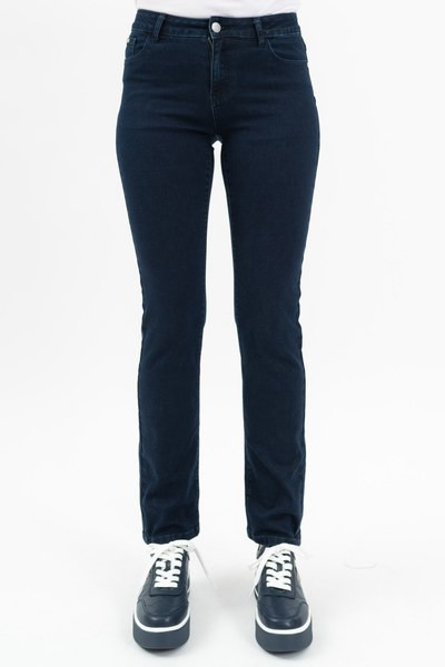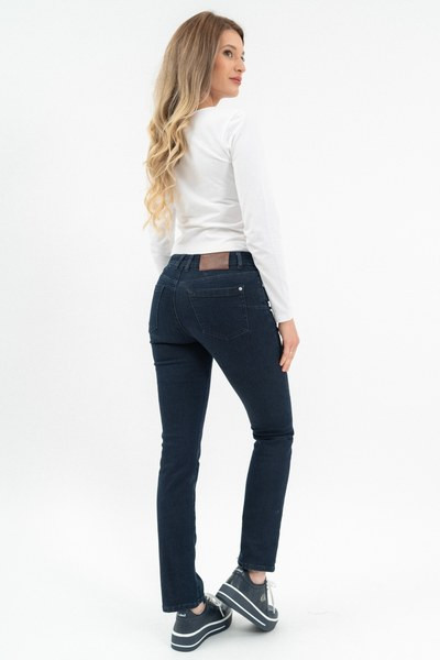 női straight farmernadrág - egyenes szabású - normál derékmagasság - push-up fazon - fém és műbőr címkével díszítve